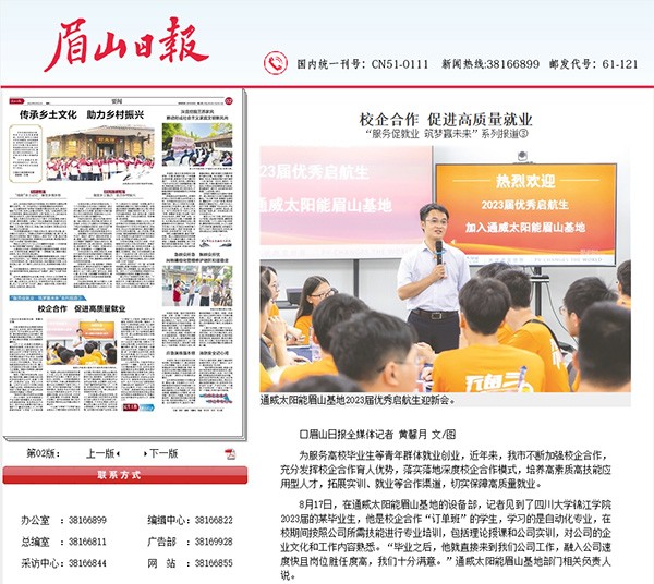 《眉山日報》聚焦通威太陽能眉山基地“校企合作”優(yōu)秀典型案例