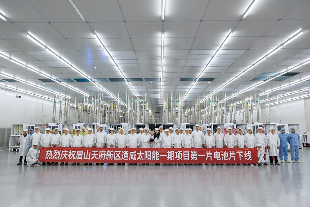 通威太陽能(電池)彭山基地一期高效晶硅電池項目第一片電池片順利下線