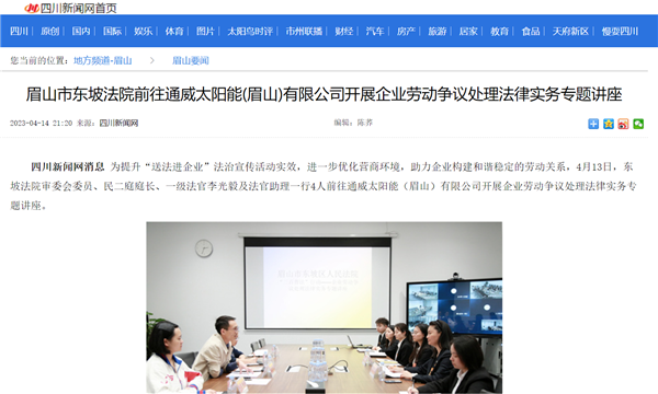 四川新聞網聚焦通威太陽能眉山基地企業勞動爭議處理法律實務專題講座