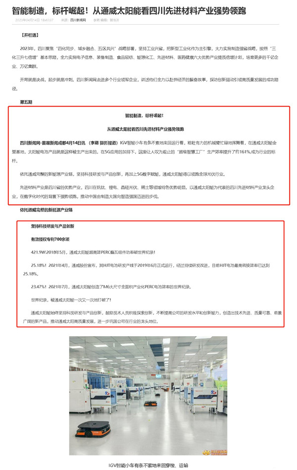 四川新聞網聚焦通威太陽能智能制造產業發展