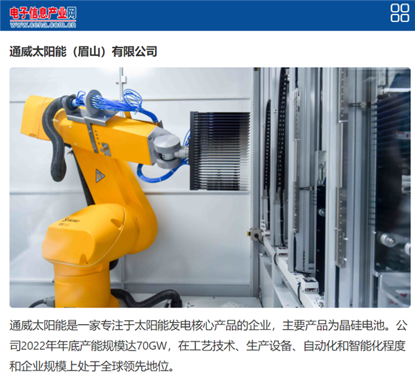《中國電子報》聚焦通威太陽能高新技術與智能制造發展