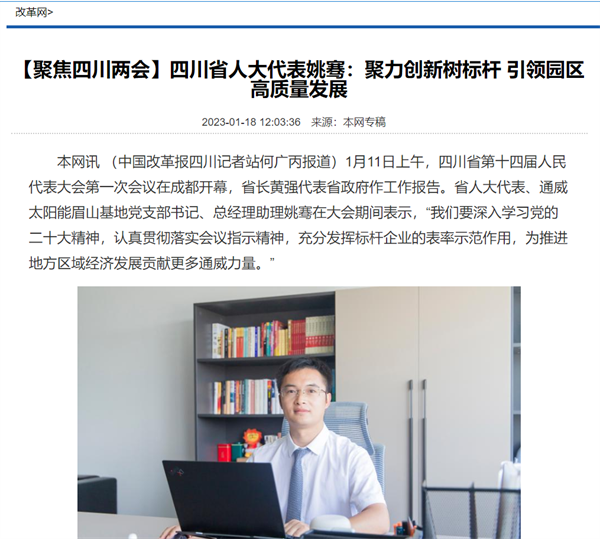 《中國改革報》聚焦四川省人大代表姚騫:帶領通威太陽能眉山基地實現(xiàn)高質(zhì)量發(fā)展