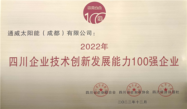 通威太陽能雙流基地獲“2022年四川企業技術創新發展能力100強企業”等多項殊榮