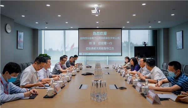 國網(wǎng)天府新區(qū)供電公司總經(jīng)理劉洋一行蒞臨通威太陽能雙流基地交流座談
