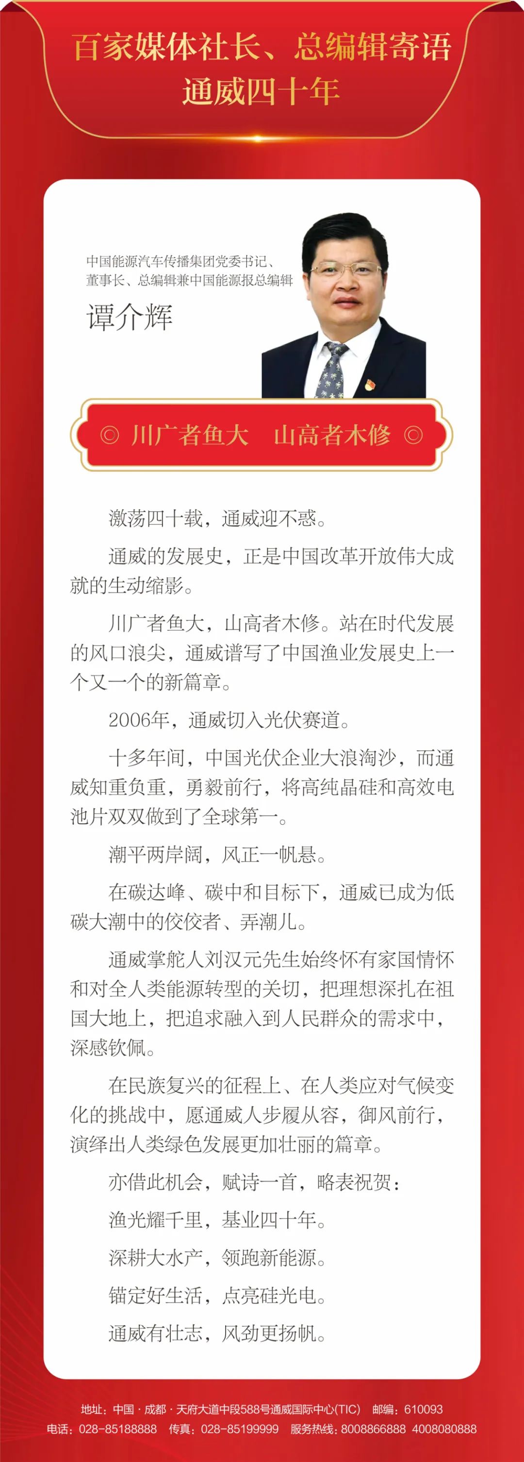 百家媒體社長、總編輯寄語通威四十年丨川廣者魚大 山高者木修
