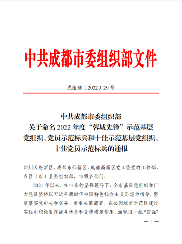 通威太陽(yáng)能金堂基地黨支部榮獲2022 年度“蓉城先鋒”示范基層黨組織稱號(hào)