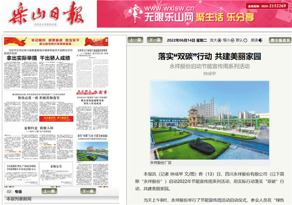 樂山市主流媒體聚焦報(bào)道永祥股份節(jié)能宣傳周活動(dòng)