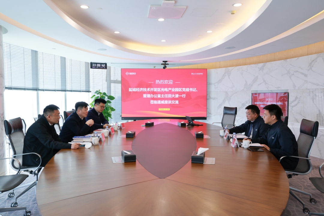 鹽城經(jīng)濟(jì)技術(shù)開發(fā)區(qū)光電產(chǎn)業(yè)園區(qū)黨組書記、管理辦公室主任田大波一行蒞臨通威座談交流