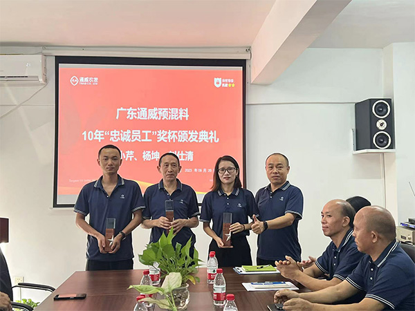 演講開始前,郭總對滿10年的“忠誠員工”頒發(fā)獎杯及獲獎員工發(fā)表在通威10年感言為演講活動熱身,使演講活動氛圍迅速提升,員工們心情激動又感動,驕傲又自豪。