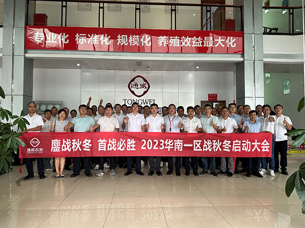 2023年9月14日,華南一區(qū)戰(zhàn)秋冬啟動(dòng)大會在廣東通威順利召開,通威農(nóng)發(fā)副總經(jīng)理何東鍵、華南一區(qū)總經(jīng)理巫勝東、廣東通威總經(jīng)理趙玉東、成都生物水產(chǎn)營銷總經(jīng)理梁海及華南一區(qū)各營銷公司總經(jīng)理、市場經(jīng)理及服務(wù)經(jīng)理,共40余人出席會議。