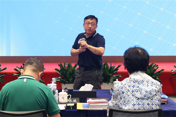 在集團(tuán)總部的交流會(huì)上,長江商學(xué)院副院長李海濤進(jìn)行現(xiàn)場授課,并對(duì)通威給予此次考察學(xué)習(xí)的大力支持表示感謝,他表示,通過實(shí)地參觀考察通威,收獲滿滿,不僅了解了通威集團(tuán)的發(fā)展歷程和成果,更學(xué)習(xí)了劉漢元主席的經(jīng)營管理智慧。考察學(xué)習(xí)過程中,深刻感受到了劉漢元主席領(lǐng)導(dǎo)通威跨界成功背后的戰(zhàn)略前瞻性及對(duì)未來趨勢的精準(zhǔn)把握,對(duì)企業(yè)的管理、發(fā)展都有很好的借鑒作用,值得企業(yè)家們學(xué)習(xí)。胡總以《可再生能源助力雙碳目標(biāo)落地》為主題,從碳達(dá)峰碳中和、中國光伏產(chǎn)業(yè)發(fā)展成績、通威光伏新能源產(chǎn)業(yè)發(fā)展等作主題分享。