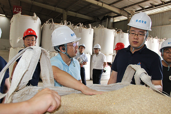 馳陽農牧張鵬總一行查看德陽通威原料質量現場