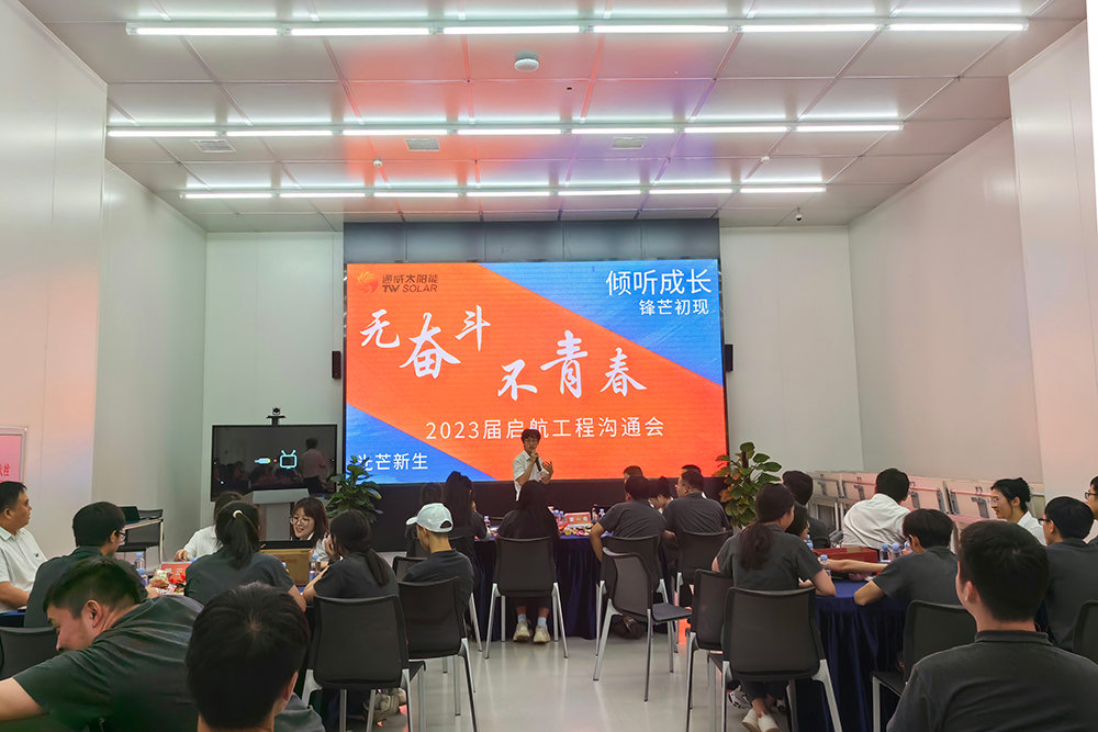 為及時了解2023屆啟航工作動態及學習情況,助力啟航成長,幫助其快速實現轉身。近日,通威太陽能各基地相繼開展2023屆啟航首次座談會,各基地中高管代表、人事行政部相關人員與600余名啟航面對面交流。