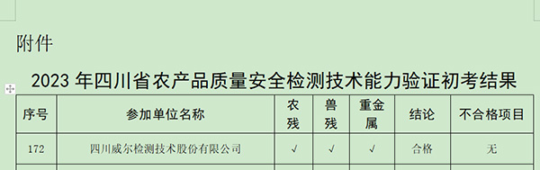 四川威爾檢測順利通過2023年四川省農(nóng)產(chǎn)品質(zhì)量安全檢測技術(shù)能力驗證