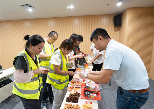 本次投選會秉持“誠信正一”的理念與原則,公正、公開進行現場試吃投票。活動伊始,活動主持人對中秋禮盒的3種方案作了詳細介紹。長桌上擺滿了美味可口的食品,桃山流心奶黃月餅、雙色冰皮藍莓月餅、廣式叉燒酥心月餅、麻辣鴨胗、燈影牛肉絲……員工代表們依次上臺進行試吃,品鑒后,大家互相討論口味并給予評價,從月餅種類、口味、各類零食以及飲品各方面對方案進行投票,最終選出滿意的方案。