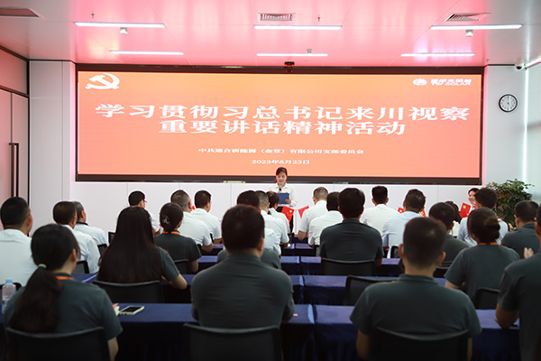 為深入貫徹黨的二十大精神,領(lǐng)會(huì)習(xí)總書記四川考察重要指示精神,8月23日,通合新能源黨支部組織開展學(xué)習(xí)貫徹習(xí)總書記來川重要講話精神專題活動(dòng)。通合新能源黨支部書記、總經(jīng)理助理羅曉云出席活動(dòng),淮州新城黨群工作部組織科副科長(zhǎng)趙忻、玉溪社區(qū)黨委黨員代表、公司黨員、入黨積極分子、團(tuán)委委員、婦聯(lián)及工會(huì)委員代表50余人參加本次活動(dòng)。