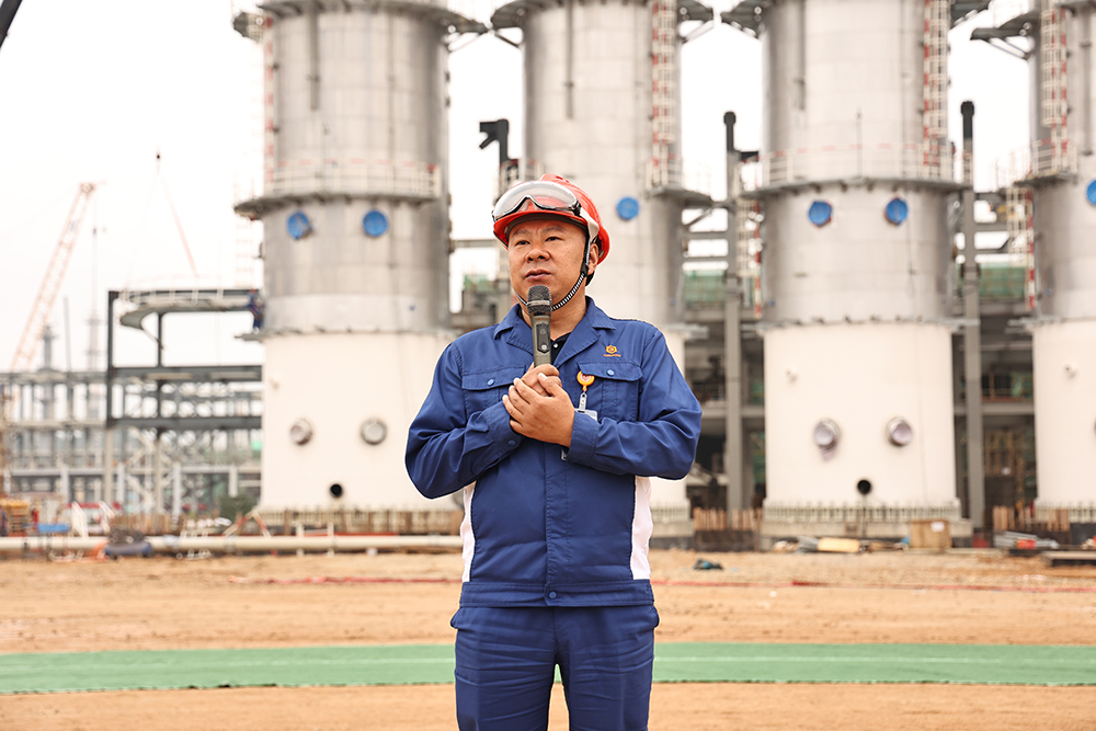 在吊裝現場,杜總指出,一路走來,二期項目部與參建單位始終秉承著通威集團董事局劉漢元主席“風清氣正,打造精品工程”的指示,共同將精品工程落到實處,做到安全施工、高效建設。精餾塔吊裝標志著云南通威項目建設從土建階段全面進入設備安裝階段,全體員工要全力以赴,向項目建成順利投產目標全力沖刺。