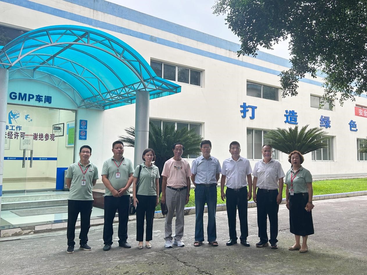 楊教授與汪教授參觀三新藥業GMP車間,了解公司目前擁有通過新版獸藥GMP認證的3個現代化車間、4條工藝先進的生產線,詢問了設備運用、生產工藝、質量管理等方面情況。