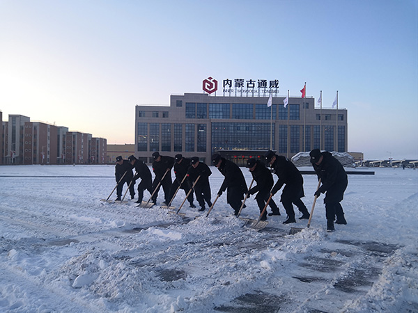 內(nèi)蒙古通威一期員工嚴寒天氣為廠區(qū)除雪保障出行