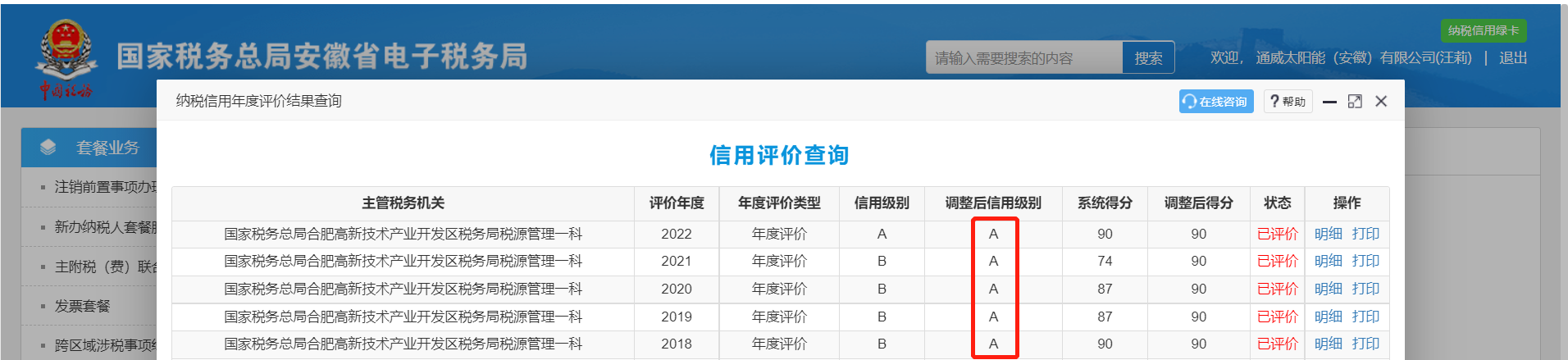 近日,國家稅務總局公布了2022年度納稅信用A級納稅人名單,通威太陽能安徽公司再次被評為“A級納稅人”企業。至此,通威太陽能安徽公司連續五年榮膺“A級納稅人”稱號。