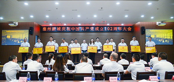 為隆重慶祝中國共產(chǎn)黨成立102周年,進一步統(tǒng)一思想、凝聚力量,立足崗位創(chuàng)先進、履職盡責(zé)爭優(yōu)秀,6月30日,淮州新城黨工委舉行了慶祝中國共產(chǎn)黨成立102周年大會暨“淮州先鋒”命名大會,決定表揚一批示范基層黨組織和示范黨員標(biāo)兵。通威太陽能金堂基地黨支部榮獲“淮州先鋒”示范基層黨組織榮譽稱號,公司一名黨員代表被命名為“淮州先鋒”黨員示范標(biāo)兵。