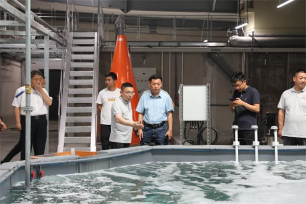 首先,李局長一行對公司D區自研車間進行了參觀,對通威工廠化的建設速度和循環水系統的先進性給予了高度的認可和評價,并對通威在生物防控方面所做出的要求和標準給予了高度的肯定,表示在當前病害防控方面看到了通威人做事的嚴謹和認真,相信通威工廠化的發展模式在為行業樹立標桿,更是在引領行業邁向快速轉型的步伐。之后,李局長代表東營市海洋發展與漁業局見證了東營漁業首批投苗的剪彩儀式,并衷心的祝愿東營漁業首批養殖取得圓滿成功。