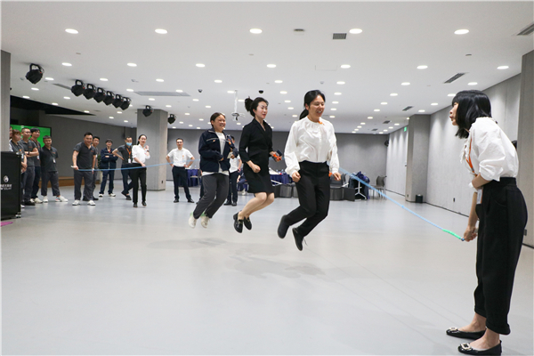 活動現場,當《童年》《同桌的你》《稻香》這些耳熟能詳的歌曲在耳邊響起,大家紛紛合唱,仿佛置身于中學時代,朗朗上口的童年廣告詞搶答讓大家回味“經典”,跳格子、跳大繩、滾鐵圈時尚輪回,仿佛又讓大家回到了大課間,與同學嬉笑打鬧,展露笑顏,還有辣條、AD鈣奶、喔喔奶糖等記憶中的童年零食分享,好不快樂,學生時代是最好的時光。