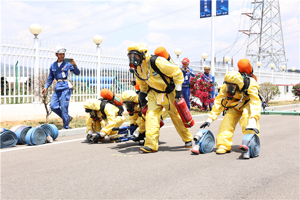 為強(qiáng)化安全管理工作,4月25日,云南通威開展應(yīng)急技能比武活動(dòng),永祥股份副總經(jīng)理、云南通威總經(jīng)理杜炳勝,云南通威副總經(jīng)理汪云清、安全環(huán)保總監(jiān)李作國(guó)、標(biāo)辦主任曾勇強(qiáng)及各工段長(zhǎng)、安全員和參賽隊(duì)員共計(jì)70余人參加了此次活動(dòng)。