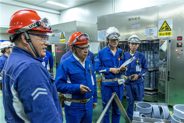 本次從關鍵裝置、重點部位、高危作業執行情況等方面,對804ABC、702ABC等裝置進行深入檢查,并對各裝置的穩定性、工藝技術、設備技術、設備可靠性層層把關,不留任何角落、任何死角。杜總在還原石墨間檢查時表示,石墨間管理很到位,現場潔凈管控好,并肯定了工段內部樹標桿、抓典型的做法,營造出了標桿引領團隊氛圍感,使石墨班組管理再上新臺階。
