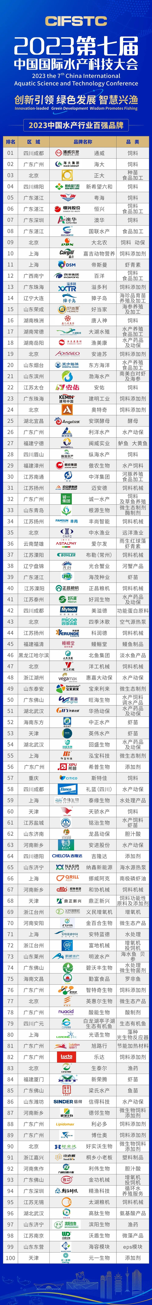 “2023中國水產(chǎn)行業(yè)百強品牌”榜隆重發(fā)布
