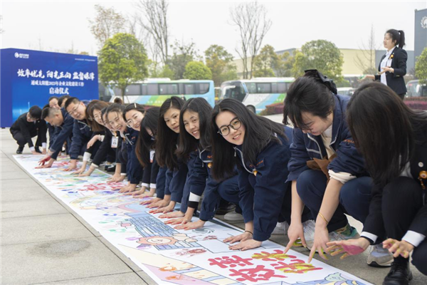 金堂基地及通合項(xiàng)目員工代表與長卷合影留念
