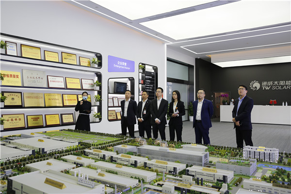 太平洋健康保險股份有限公司四川分公司總經理陳裕豐一行蒞臨通威太陽能雙流基地參觀交流
