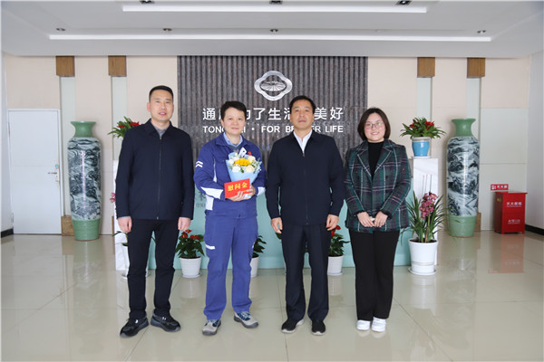 3月6日,在第113個“三八”國際婦女節即將來臨之際,五通橋區委書記劉勇蒞臨永祥多晶硅,慰問公司總經理劉逸楓,向她送上鮮花并致以節日的問候和祝福。