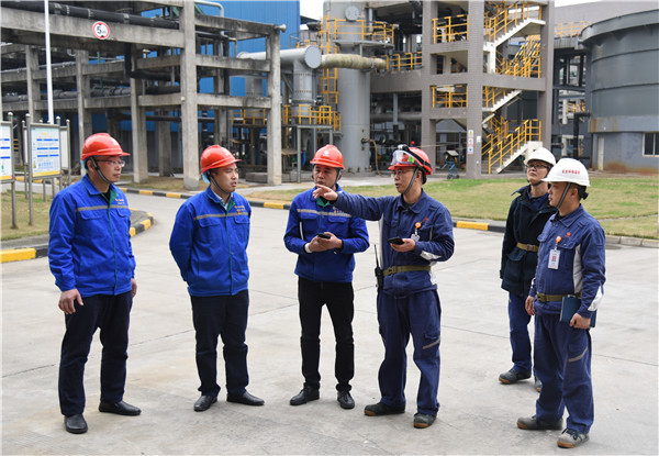 張紅東主任和張玉標(biāo)董事長(zhǎng)一行分別對(duì)公司離子膜電解工序、淡鹽水濃縮工序、高鹽廢水技改項(xiàng)目及PVC裝置進(jìn)行參觀,柳總和李總分別對(duì)公司生產(chǎn)工藝和安全管理進(jìn)行介紹。考察組一行對(duì)公司離子膜電解投入使用以來(lái)電解消耗的平穩(wěn)狀態(tài)及高鹽廢水的處理再回收利用技術(shù)給予高度評(píng)價(jià)。