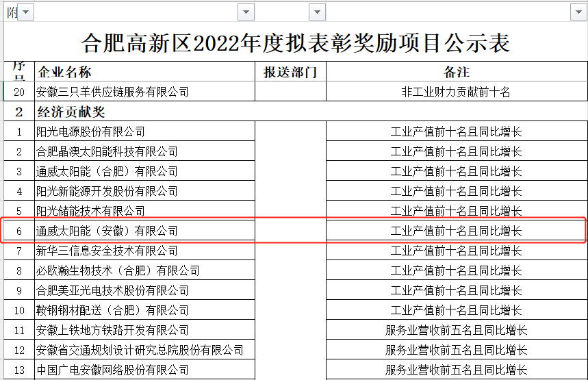 近日,合肥市高新區(qū)經(jīng)濟(jì)發(fā)展局公布了“合肥高新區(qū)2022年度表彰獎(jiǎng)勵(lì)項(xiàng)目”名單,通威太陽能(安徽)有限公司榮列其中,獲得合肥高新區(qū)“經(jīng)濟(jì)效益獎(jiǎng)—經(jīng)濟(jì)貢獻(xiàn)獎(jiǎng)”殊榮。