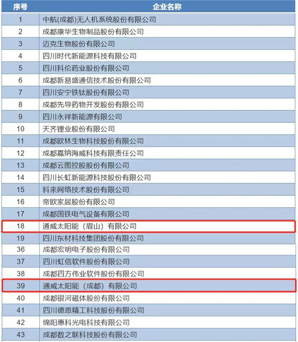 近日,四川省工業和信息化研究院發布了“2022年四川省新經濟100強企業榜單”,通威太陽能雙流基地、眉山基地雙雙榮列其中。