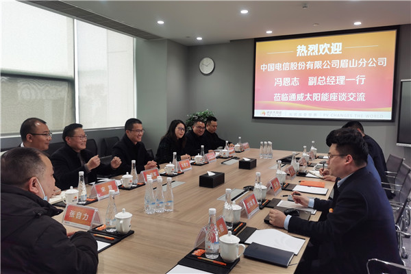 中國電信股份有限公司眉山分公司副總經(jīng)理馮恩志一行蒞臨通威太陽能座談交流