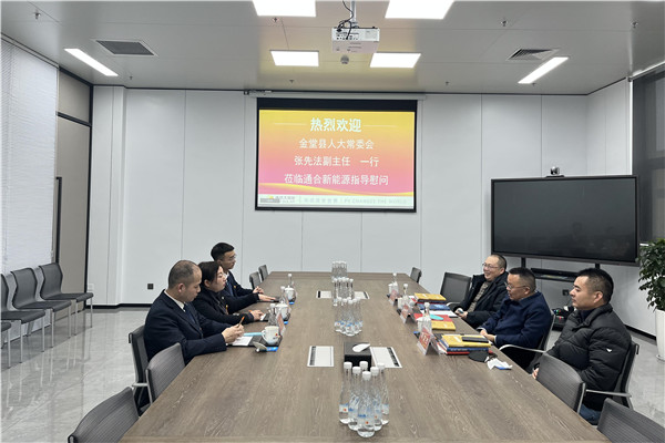 1月13日,金堂縣人大常委會黨組成員、副主任張先法,金堂縣人大常委會經濟委主任林文杰,金堂縣人大常委會預算委主任肖相文代表金堂縣人大常委會蒞臨通合新能源指導慰問,通合新能源總經理助理羅曉云攜財務信息部、人事行政部相關負責人熱情接待。