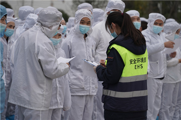 本次演練模擬A1車間西區(qū)樓頂空調(diào)外機(jī)著火情景。演練現(xiàn)場(chǎng),安全環(huán)境部相關(guān)負(fù)責(zé)人擔(dān)任本次演練總指揮,秩序部發(fā)現(xiàn)火情并立即通知消控室,消防室隨即啟動(dòng)火災(zāi)專項(xiàng)應(yīng)急預(yù)案并撥打消防隊(duì)電話請(qǐng)求支援。車間人員聽到火災(zāi)警報(bào)后迅速疏散至升旗廣場(chǎng)緊急避難。消防搶險(xiǎn)救災(zāi)組、醫(yī)療救護(hù)組、后勤安保組迅速到位,立即展開救援,控制火勢(shì)并匯報(bào)現(xiàn)場(chǎng)情況。專業(yè)消防隊(duì)抵達(dá)金堂基地,立即使用舉高噴射消防車向樓頂出水滅火。演練現(xiàn)場(chǎng),各應(yīng)急小組各司其職,現(xiàn)場(chǎng)很快得到控制并消除,達(dá)到演練預(yù)期效果。