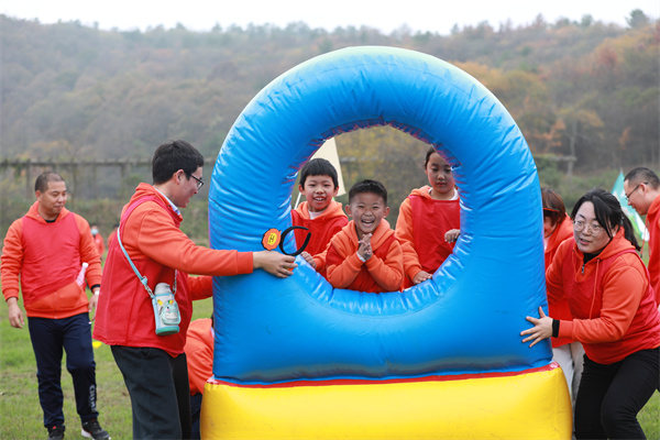 本次家庭日活動分為拓展活動、家庭親子互動、篝火晚會三個環節,活動現場準備了茶歇,搭建了天幕、帳篷等露營設備供大家休憩。開幕式結束后,進入激動人心的團隊拓展環節,現場分成4個游戲小組,開展趣味接力賽、趣味射箭、坦克大戰、團體拔河等團隊凝聚力游戲,大朋友、小朋友們齊心協力,為團隊榮譽而戰,歡聲笑語在山谷間回蕩,團體拔河將現場氛圍再次推向高潮。