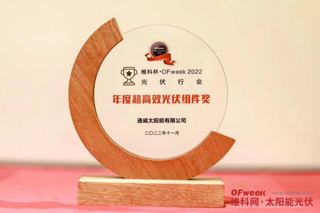 通威太陽能榮獲維科杯·OFweek 2022年度超高效光伏組件獎