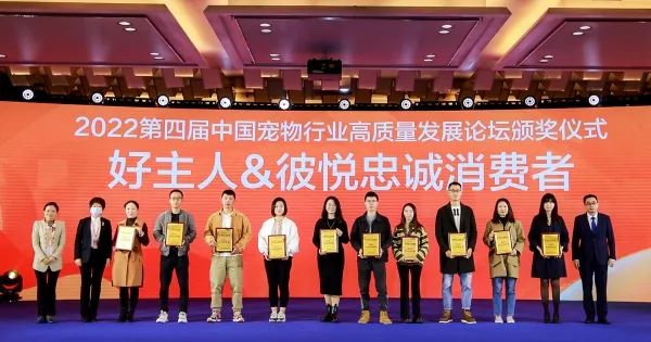 論壇現場還頒發了“好主人&彼悅忠誠消費者”、“好主人優秀合作伙伴”、“2022中國寵物行業·十大年度品質典范獎”。好主人公司將進一步提供高品質服務和高品質產品,與消費者攜手共同助推中國寵物行業的快速發展。