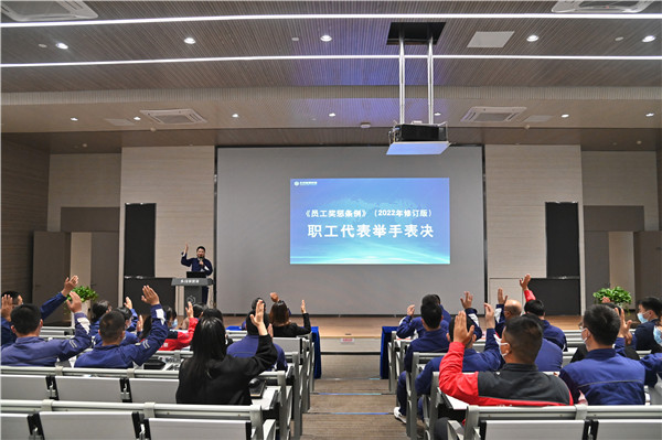 會(huì)議審議了《員工獎(jiǎng)懲條例》2022修訂版、《員工關(guān)愛互助基金管理辦法》2022修訂版、《員工福利管理制度》等若干管理制度以及集體合同、工資合同、女職工合同三項(xiàng)草案,并通過主持人會(huì)上宣貫和解讀文件,職工代表舉手表決的方式,一致通過以上制度與合同草案。