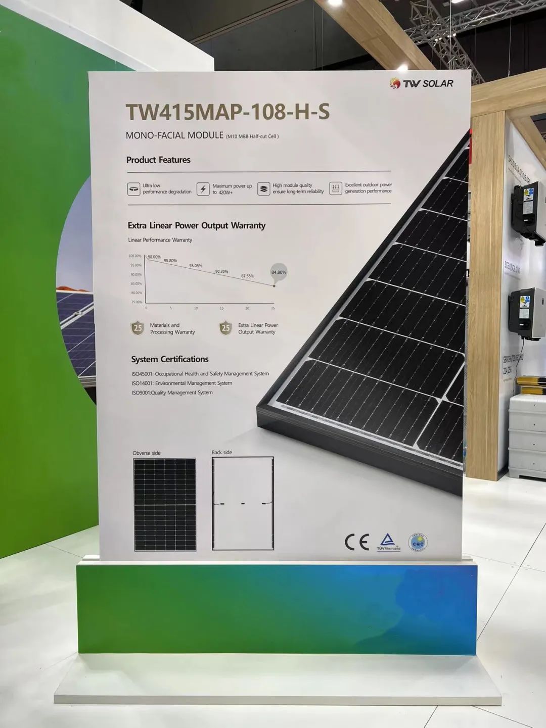 以本次展會(huì)為契機(jī),通威組件海外營(yíng)銷(xiāo)團(tuán)隊(duì)重點(diǎn)向客戶(hù)推介了采用通威前沿創(chuàng)新技術(shù)生產(chǎn)的182mm 54黑框415 W組件,該款產(chǎn)品精致的外觀(guān)設(shè)計(jì)充分滿(mǎn)足了海外客群的審美要求,前沿的技術(shù)加持使得產(chǎn)品具有過(guò)硬的質(zhì)量保證,同時(shí)具備高抗衰性、高抗隱裂等穩(wěn)定性能,滿(mǎn)足澳大利亞熱帶、亞熱帶干旱氣候下多樣化使用場(chǎng)景的裝機(jī)需求。