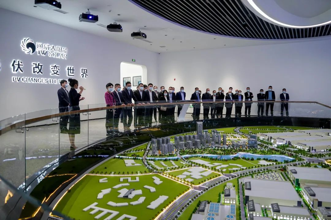萬濤董事長一行先后參觀了集團體驗中心、通威太陽能金堂基地,詳細(xì)了解了通威40年發(fā)展歷程以及綠色農(nóng)業(yè)、綠色能源的產(chǎn)業(yè)布局,對通威多年綠色發(fā)展成果和智能制造領(lǐng)先性給予高度贊賞。