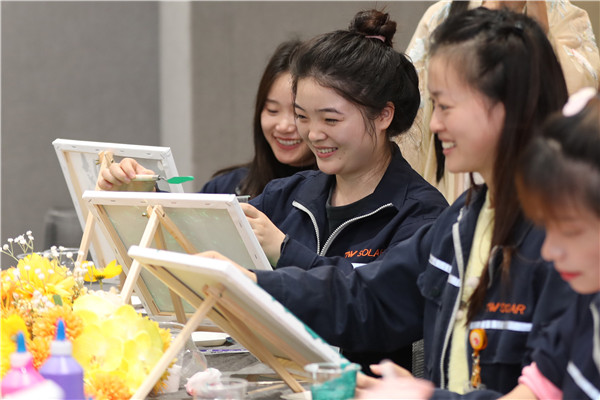 本次生日會通過開展妙趣橫生的“手工臺燈”DIY、“肌理畫”DIY等活動讓員工在公司也能感受到“家”的關懷與溫暖。活動現場,多彩的氣球將生日會場裝飾得十分溫馨,伴隨著歡快的歌曲,各基地生日會在愉悅的氛圍中拉開帷幕。互動環節,“搶凳子”“7的倍數”“EMOJI猜成語”等暖場游戲讓大家歡樂不斷,現場氛圍滿滿。DIY環節,壽星們穿戴好圍裙,在老師的指導下,通過對色彩、圖案、飾品的自由調配,或制作出獨一無二的夢幻光影臺燈,或描繪出靈動3D肌理畫作,整個過程大家樂在其中,治愈解壓,深受壽星們的喜愛。