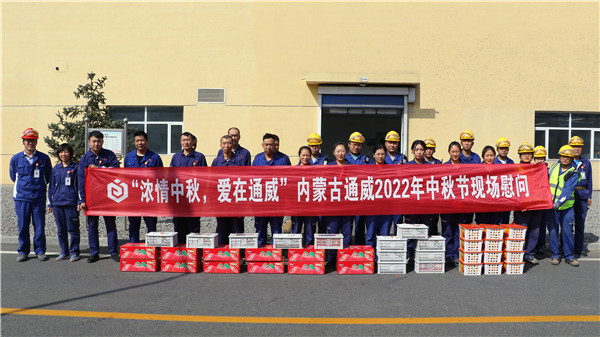 9月10日,內蒙古通威常務副總經理張習松、安全環保總監黃毅深入一期、二期生產現場慰問堅守崗位員工。“祝大家中秋節快樂!”,每到一處,領導親切與員工握手,對員工們的辛勤付出表示衷心感謝,并向大家送上中秋節禮品致以祝福和誠摯感謝。收到來自公司的祝福與慰問,員工們表示,要牢記領導囑托,將這份感動化作工作熱情,擼起袖子繼續加油干,履職盡責,做好工作。