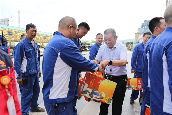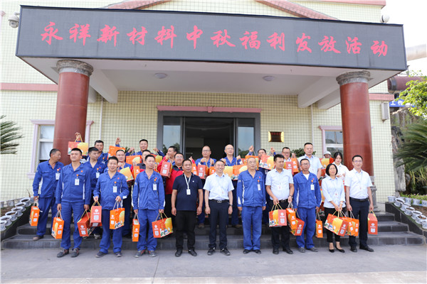 9月6日,在中秋佳節(jié)來臨之際,永祥新材料組織開展中秋福利發(fā)放活動,公司常務(wù)副總經(jīng)理廖萬能、副總工程師吳銘生、總經(jīng)理助理李文彬及早班、長白班員工參加。