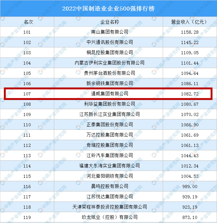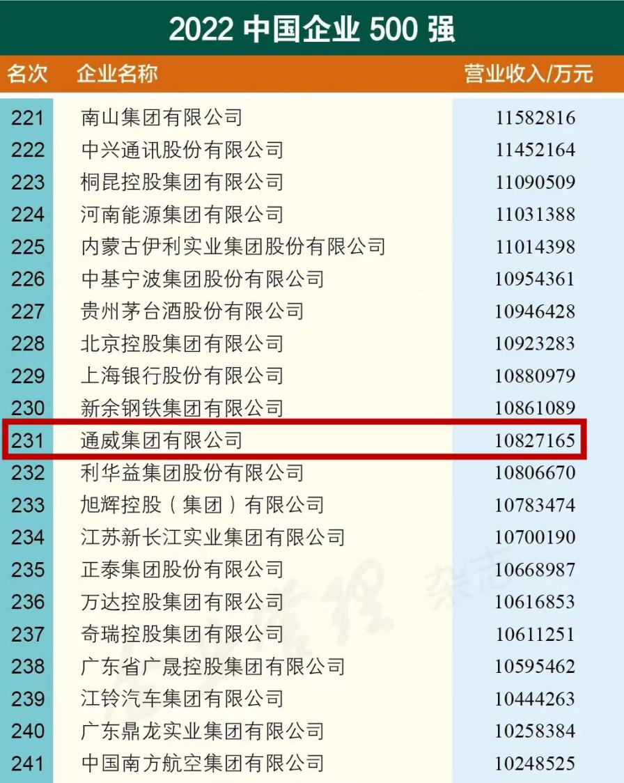 9月6日上午,中國企業聯合會、中國企業家協會發布了2022中國企業500強、中國制造業企業500強、中國服務業企業500強榜單。作為深耕綠色農業、綠色能源的大型跨國集團公司,通威以超1082億元營收,榮登“中國500強企業”第231位、“中國制造業企業500強”第107位,充分展現了在復雜多變的經濟形勢下持續穩健的發展態勢和卓越的競爭實力。
