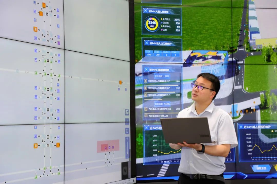 ▲工作人員在金堂基地信息技術控制中心觀察車間運行情況